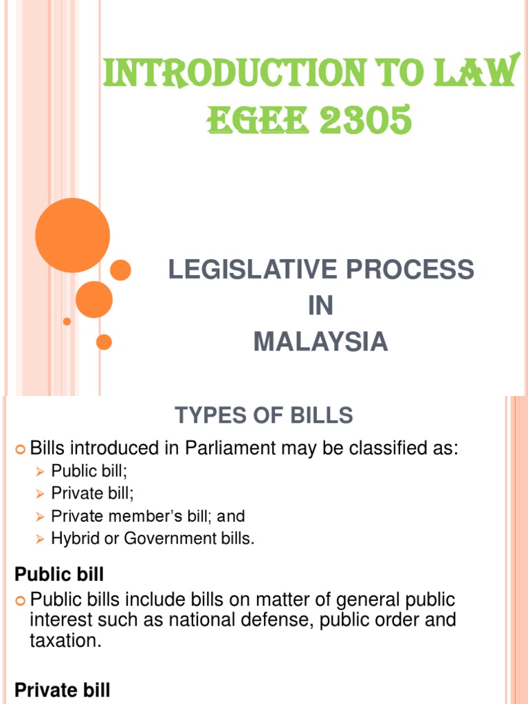 PASSAGE OF ORDINARY BILLS. The legislative process in Malaysia INTRODUCTION Administrative system in Malaysia nature of Doctrine is legislative power responsible for making laws the executive power which governed and political and judicial power which enforced the laws made by the first branch and each section shall have the different tasks in the government. All bills legislative proposals Sign inRegister Sign inRegister Home My Library Courses.